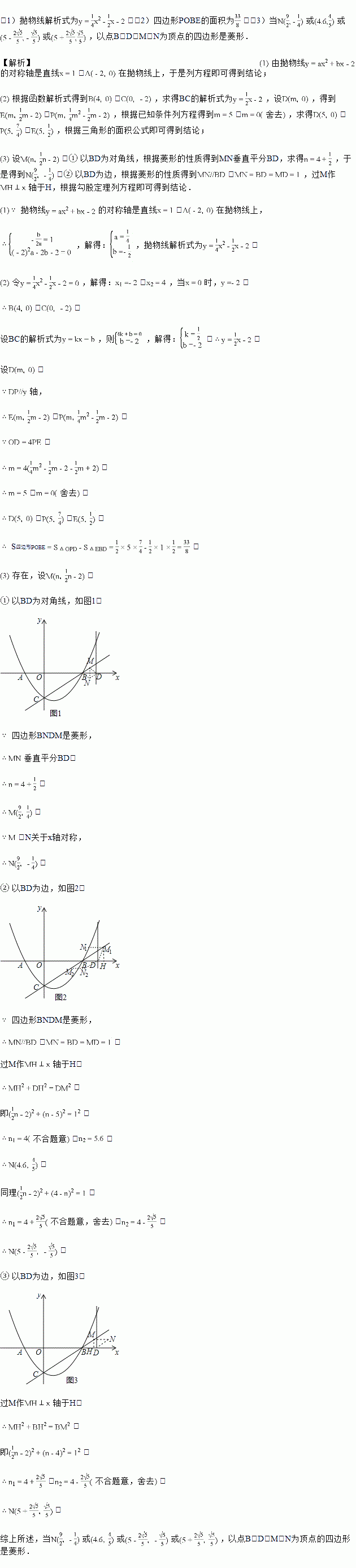 的条件下,若点M为直线BC上一点,点N为平面直角坐标系内一点,是否存在这样的点M和点N,使得以点B,D,M,N为顶点的四边形是菱形?若存在,直接写出点N的坐标;若不存在,请说明理由.![]()
