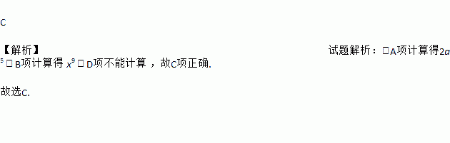 C 【解析】试题解析::A项计算得2a5 , B项计算得 x9 , D项不能计算 ,故C项正确. 故选C.