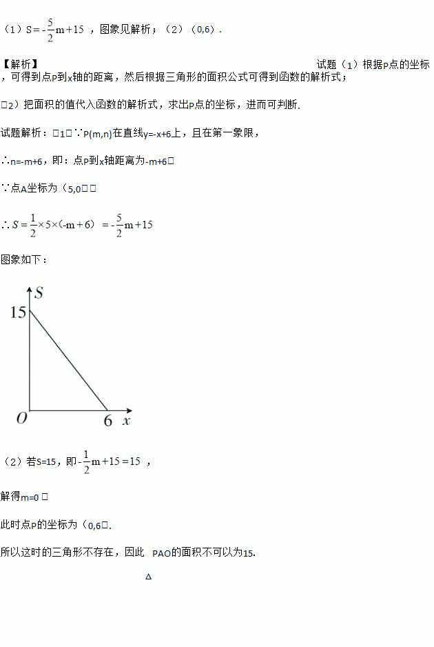 在平面直角坐标系中,点P(m,n)在第一象限,且在直线y=-x+6上,点A的坐标为(5,0),O是坐标原点,△PAO的面积是S.