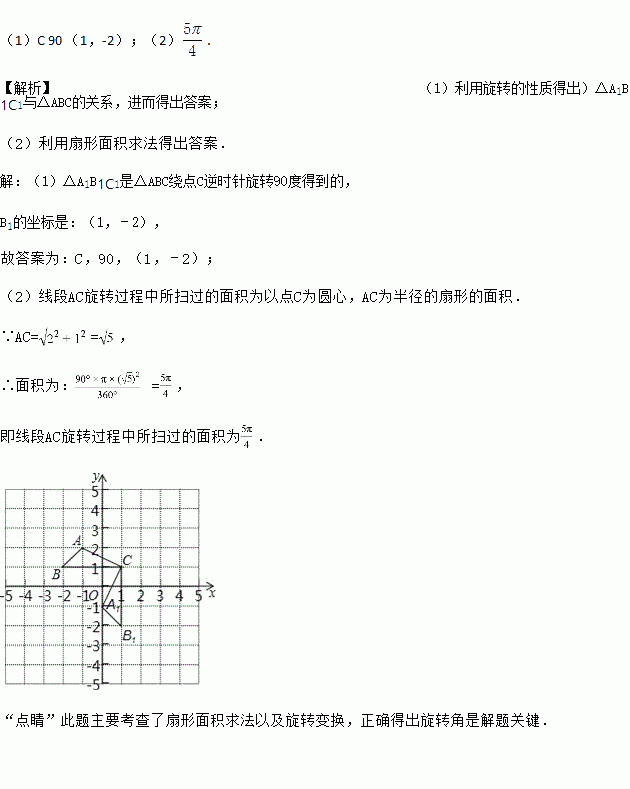 (2)求出线段AC旋转过程中所扫过的面积(结果保留π).