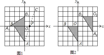 (2)将△OAB绕O顺时针旋转90°,在图1中画出旋转后的图形,并涂黑;