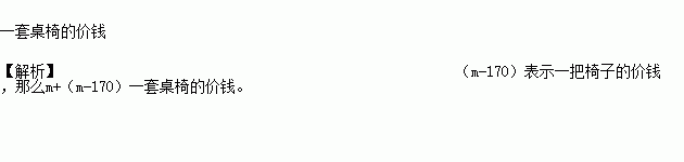 每张桌子的价钱是m元,椅子比课桌便宜170元,那么m+(m-170)表示的是(_____________________________)