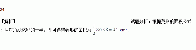 已知一个菱形的两条对角线长分别为6cm和8cm,则这个菱形的面积为____________cm2.
