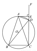 如图,四边形ABCD是⊙O的内接四边形,点F 是CD延长线上的一点,且AD平分∠BDF,AE⊥CD于点E.