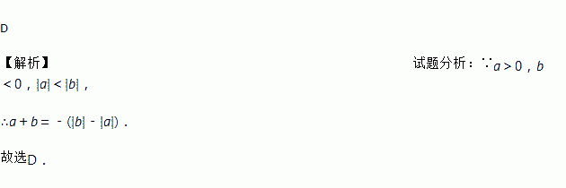 若a>0,b<0,|a|<|b|,则a与b的和是( )