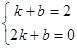 (2)把A(1 , 2),B(2 , 0)代入y=kx+b得