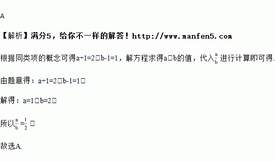 如果2xa+1y与x2yb﹣1是同类项,那么的值是( )