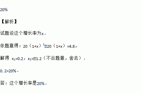 某公司今年销售一种产品,1月份获得利润20万元,由于产品畅销,利润逐月增加,3月份的利润比2月份的利润增加4.8万元,假设该产品利润每月的增长率相同,求这个增长率.