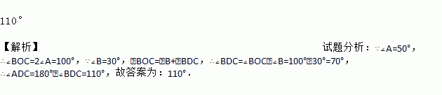 如图,点A,B,C在⊙O上,CO的延长线交AB于点D,∠A=50°,∠B=30°,则∠ADC的度数为_____.