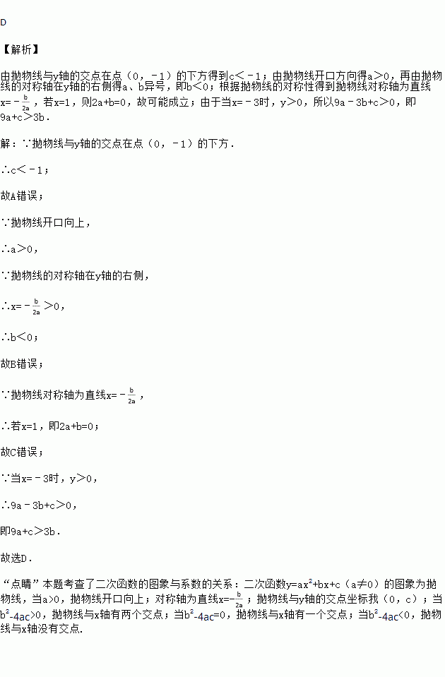 A. c>-1 B. b>0 C. 2a+b≠0 D. 9a+c>3b