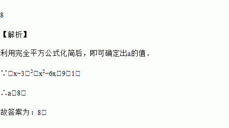 一元二次方程x2-6x+a=0,配方后为(x-3)2=1,则a=______.