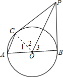 分析:连接OC,根据题干条件证明△PCO≌△PBO,求得∠PCO=90°.