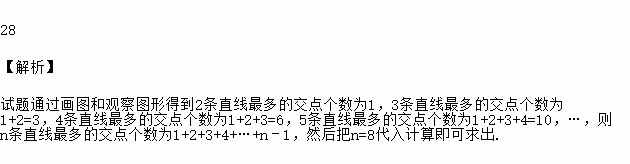 如图、两条直线相交只有1个交点,三条直线相交最多有3个交点,四条直线相交最多有6个交点,五条直线相交最多有10个交点,八条直线相交最多有 交点.