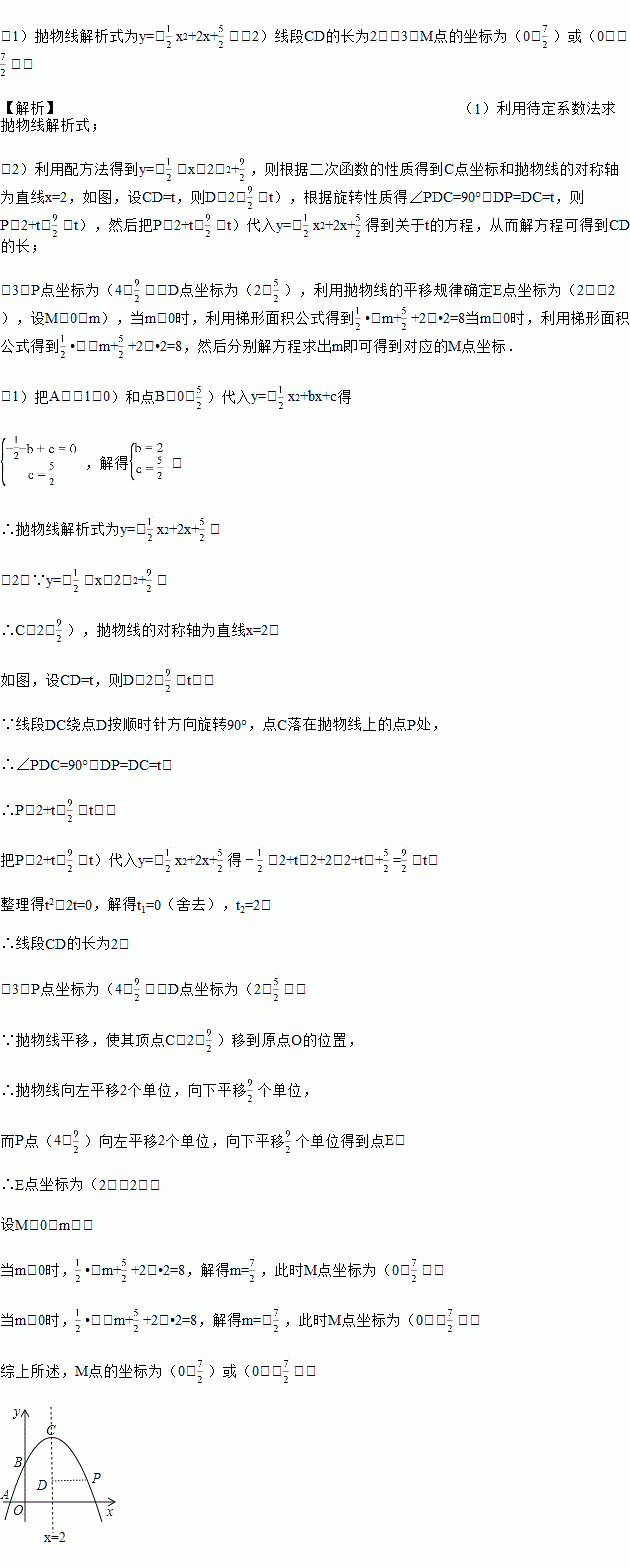 ),顶点为C,点D在其对称轴上且位于点C下方,将线段DC绕点D按顺时针方向旋转90°,点C落在抛物线上的点P处.