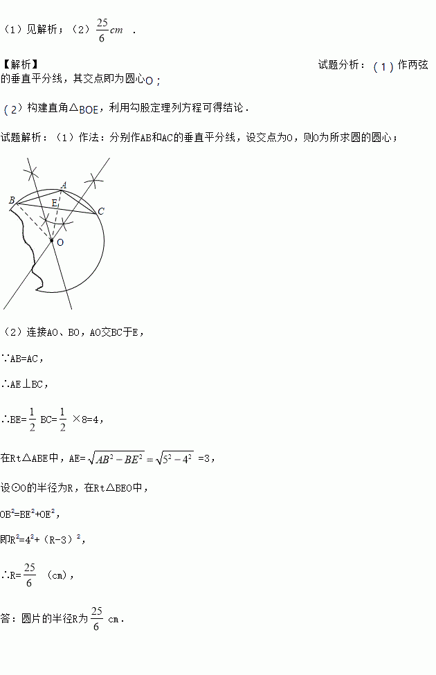 (2)设△ABC是等腰三角形,底边BC=8cm,腰AB=5cm,求圆片的半径R.