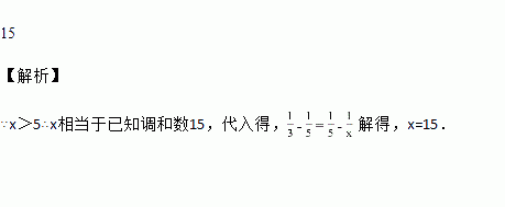 .因此就将具有这样性质的三个数称为调和数,如6,3,2也是一组调和数.现有一组调和数:x,5,3(x>5),则x=________.
