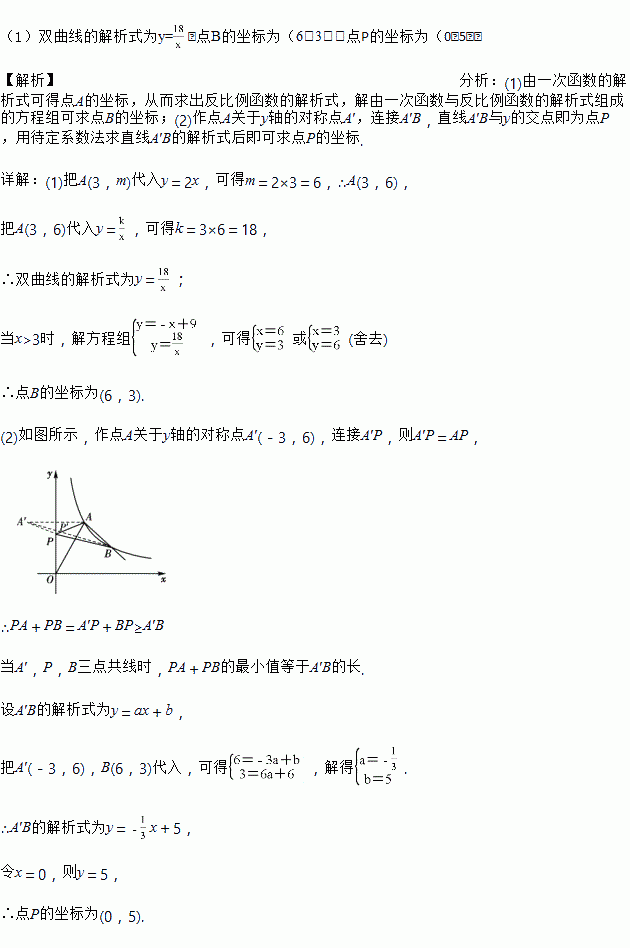 (2)若点P在y轴上,连接PA,PB,求当PA+PB的值最小时点P的坐标.