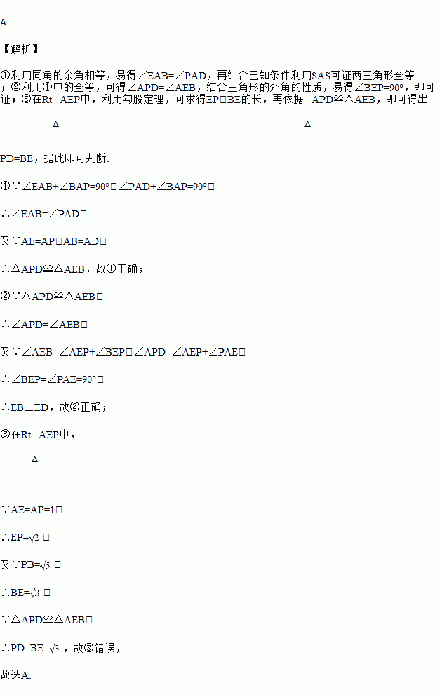 ,下列结论:①△APD≌△AEB;②EB⊥ED;③PD=