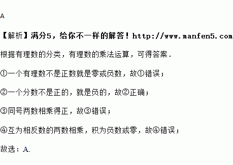 ①一个有理数不是正数就是负数;②一个分数不是正的,就是负的;③同号两数相乘,符号不变;④互为相反数的两数相乘,积一定为负.
