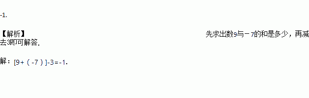 数9与-7的和减去3的差是 .
