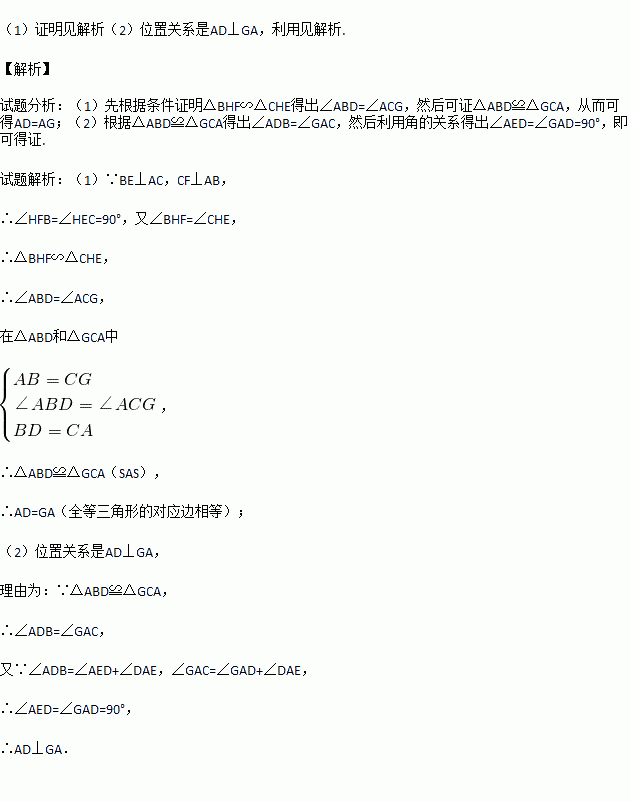 求证:(1)AD=AG,(2)AD与AG的位置关系如何。