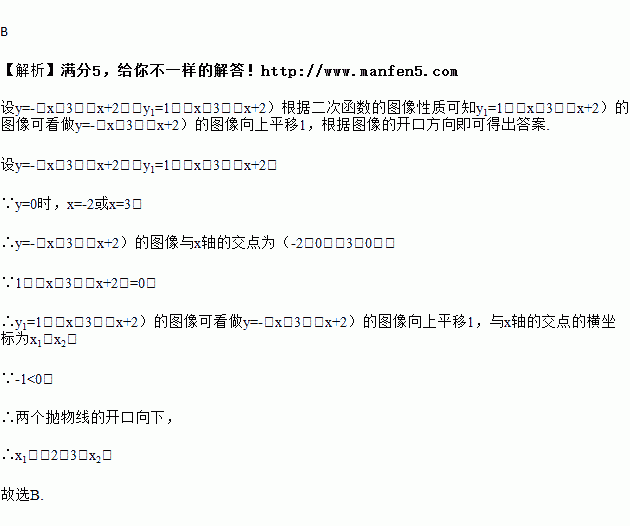 A. –2<x1<x2<3 B. x1<–2<3<x2 C. –2<x1<3<x2 D. x1<–2<x2<3
