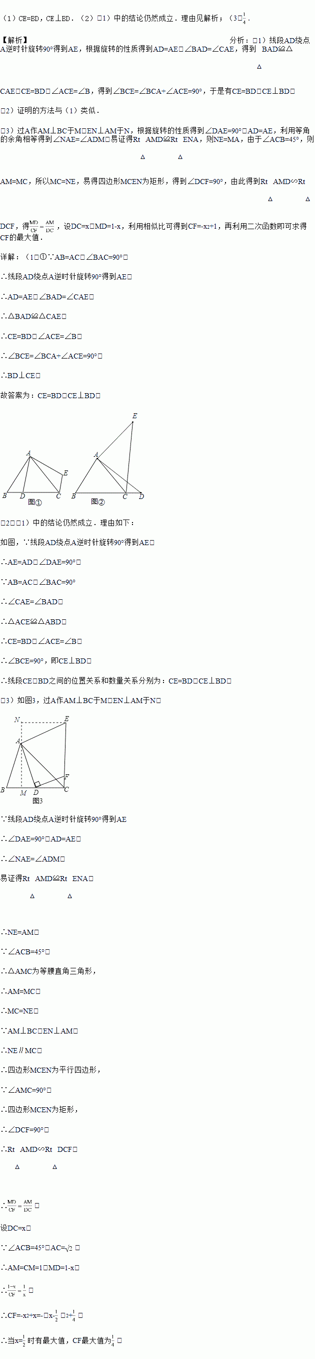 ,其他条件不变,过点D作DF⊥AD交CE于点F,请直接写出线段CF长度的最大值.