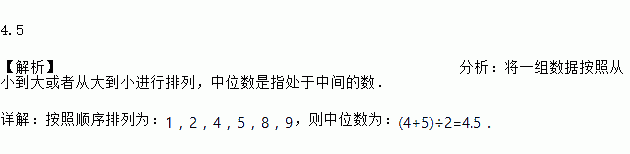 已知一组数据:1,8,9,2,4,5.则这组数据的中位数是_____.