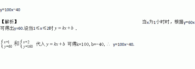 一辆汽车在行驶过程中,路程y (千米)与时间x (小时)之间的函数关系如图6所示.当0≤x≤1时,y关于x的函数关系式为y=60x,那么当1≤x≤2时,y关于x的函数关系式为 .