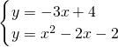 ①当m=-2,n=-3时,y1=-3x+4,y2=x2-2x-2,联立