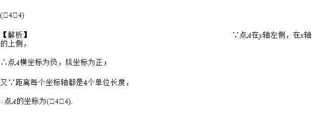 点A在y轴左侧,在x轴的上侧,距离每个坐标轴都是4个单位长度,则点A的坐标为__________.
