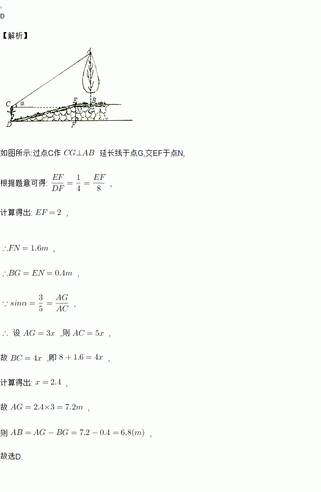 的水平距离DF为8m处的D点,测得大树顶端A的仰角为