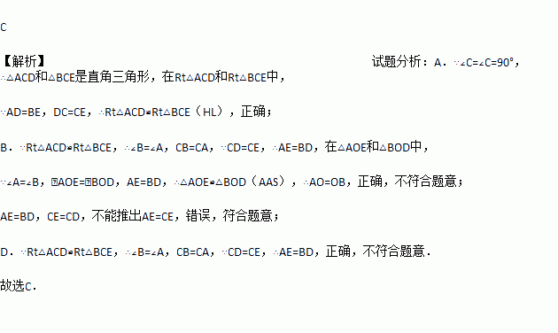 如图,在Rt△ACD和Rt△BEC中,若AD=BE,DC=EC,则不正确的结论是( )