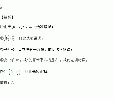 ①;②; ③的平方根是;④的算术平方根是;⑤是的平方根.