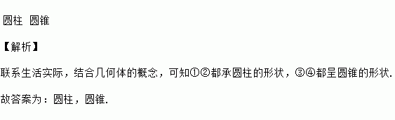 ①一段烟囱(无烟囱帽);②一段圆钢;③铅锤;④烟囱帽.①②都呈________的形状;③④都呈________的形状.