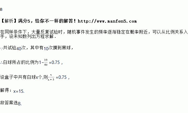 在一个不透明的盒子里,装有个黑球和若干个白球,这些球除颜色外都相同,将其摇匀后从中随机摸出一个球,记颜色后再把它放回盒子中,不断重复,共摸球![]()