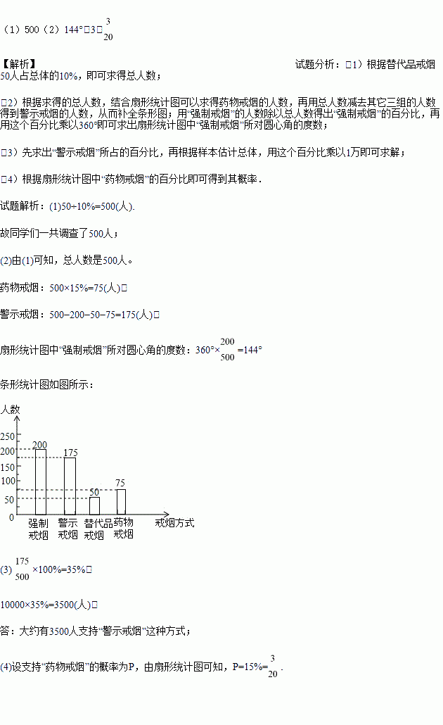 (3)若该社区有1万人,请你估计大约有多少人支持“警示戒烟”这种方式?