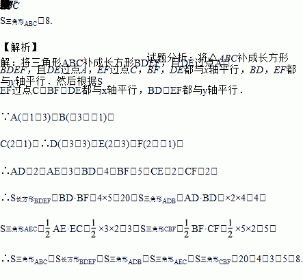 如图,已知三角形ABC的三个顶点的坐标分别为A(-1,3),B(-3,-1),C(2,1),求三角形ABC的面积.