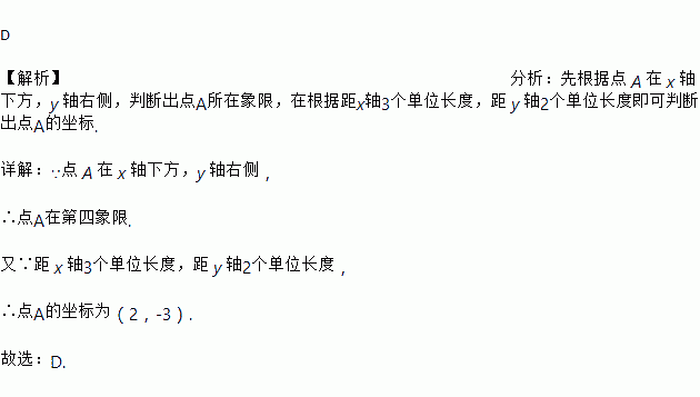 若点 A 在 x 轴下方,y 轴右侧,距 x 轴 3 个单位长度,距 y 轴 2 个单位长度,则点 A 的 坐标为( )