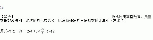 计算:()﹣2+|﹣2|﹣+6cos30°+(π﹣3.14)0.