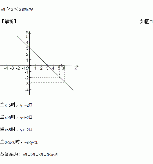 如图,已知一次函数y=﹣x+3 当x________时,y=﹣2;