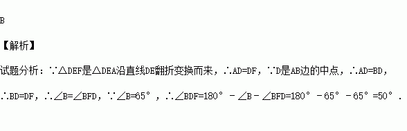 如图,已知D为△ABC边AB的中点,E在AC上,将△ABC沿着DE折叠,使A点落在BC上的F处.若∠B=65°,则∠BDF等于( )