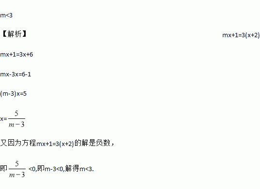 当m__________时,方程mx+1=3(x+2)的解是负数.