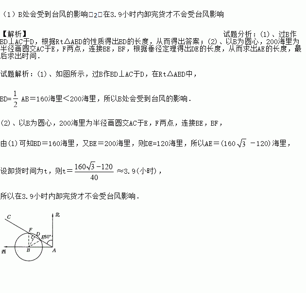 (1)B处是否会受到台风的影响?清说明理由;
