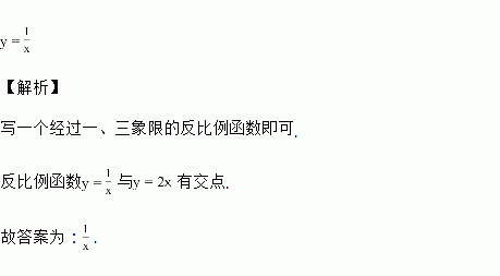 已知一个反比例函数的图象与正比例函数的图象有交点,请写出一个满足上述条件的反比例函数的表达式:__________________.