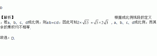 给出下列各组线段,其中成比例线段是( )
