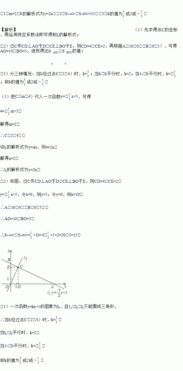 x+5的图象l1分别与x,y轴交于A,B两点,正比例函数的图象l2与l1交于点C(m,4).