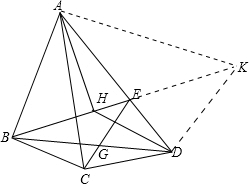 (2)根据(1)的结论,知E、G分别为AD、BD的中点,结合已知,得点H是△ABD的重心.延长BE到K,使得BE=EK,连接AK、DK,构造平行四边形,根据平行四边形的性质和重心的性质进行分析求解.