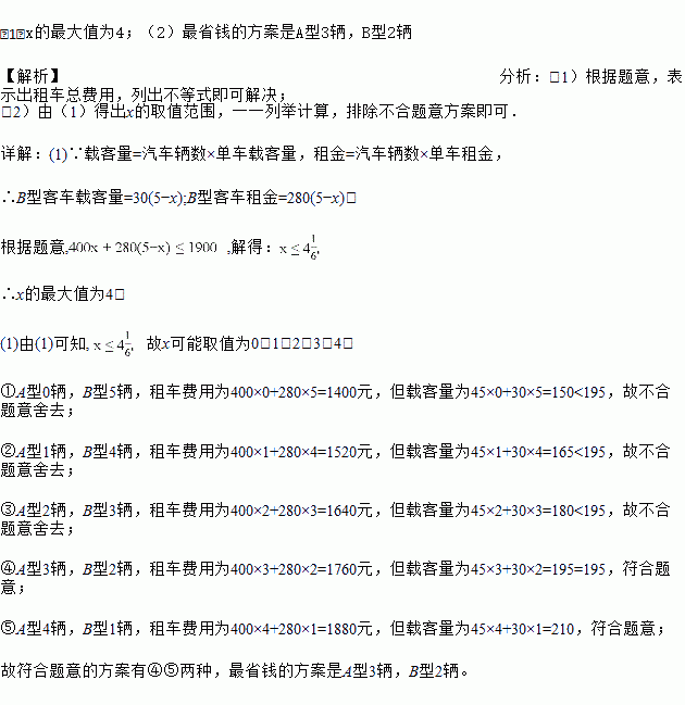 (1)若要保证租车费用不超过1900元,求x的最大值;