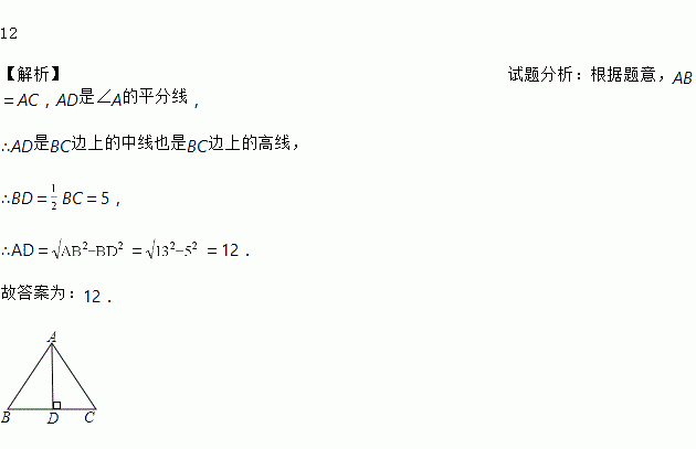 等腰三角形的腰长为13,底边长为10,则顶角的平分线为________.